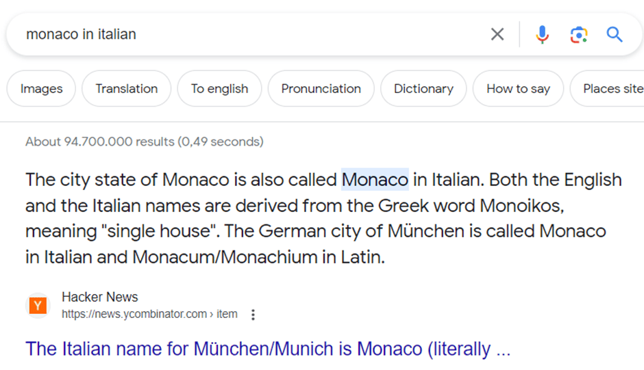 A comment from desdiv is ranking #1 for the question “Monaco in italian”