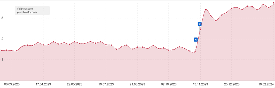 I looked at the rankings for Hackernews with popular tools like sistrix and semrush in the UK and the US, because it only has content in english. And I found this: a 162% rise in visibilities in the ranking in the UK and a 75% increase in the US.